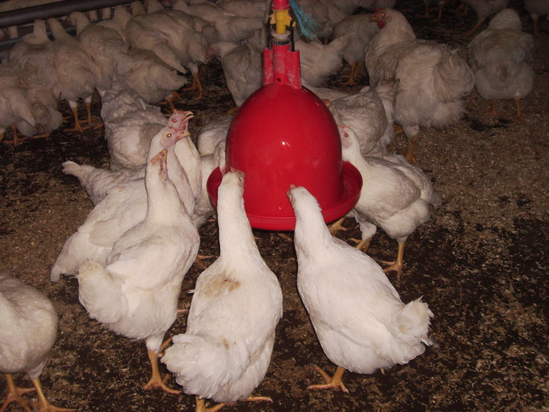 Onze hoofdtak is pluimvee. Wij hebben 17.000 kippen en hanen verspreid over drie grote stallen, in een verhouding van tien op één. Wij houden de kippen om voor broedeieren te zorgen.